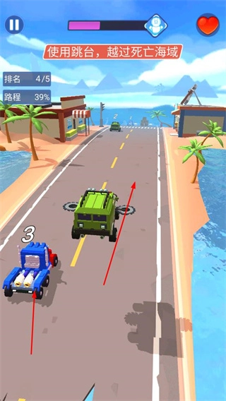 当遇到死亡海域这类障碍时,借助跳台之类的设施,能让赛车顺利越过障碍,从而推进比赛继续进行。