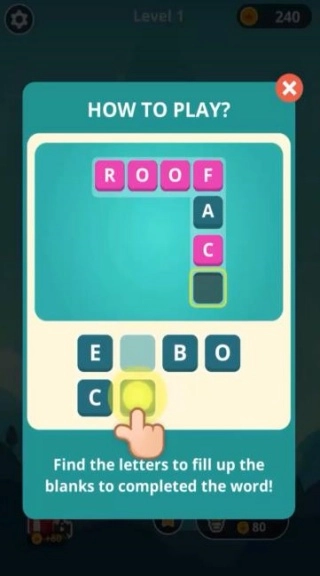 在屏幕上滑动字母,拼凑出正确的单词以填补空格,从而完成这道谜题。