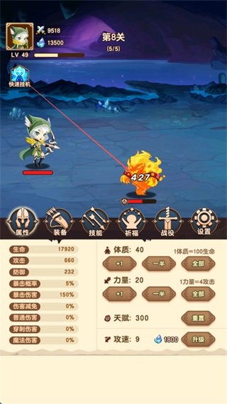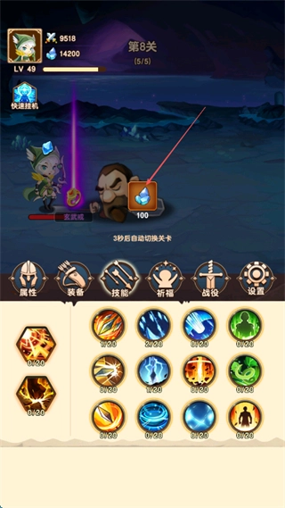 当进入后续关卡(例如第9关)时,你将面对机械骑士这类全新的敌方怪物。此时,你可以凭借升级后的技能与提升的战力,让角色自动展开战斗,从而一步步推进关卡进度。