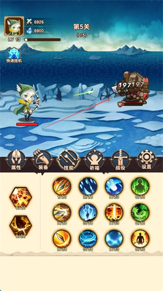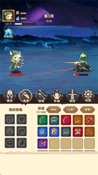 经典的挂机放置玩法让玩家离线时也能持续获取收益,同时还融入了RPG的核心内容:装备系统覆盖武器、armor、饰品等品类,能通过强化、进阶来增强属性;技能方面则包含主动与被动两种类型的技能。