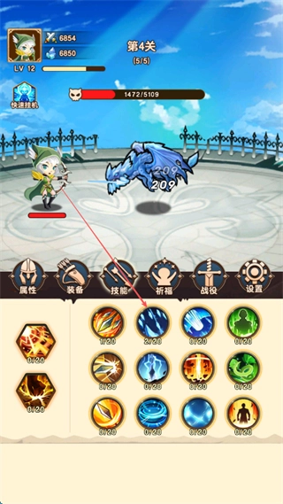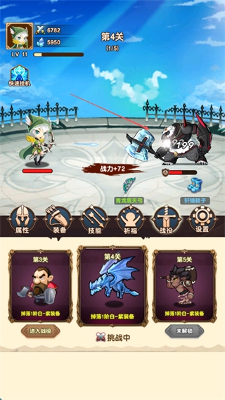 继续挑战后续的关卡,比如第5关,借助升级后的装备与技能,自动击败敌方怪物,从而完成通关任务。