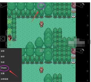 在移动设备上启动GBA模拟应用,待游戏加载完成后,找到指定的功能图标并点击,随后在弹出的选项中选择作弊码相关设置项。