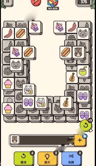 开始游戏,点击相同的图案方块来消除掉,当所有方块被清楚后就可以获得胜利。