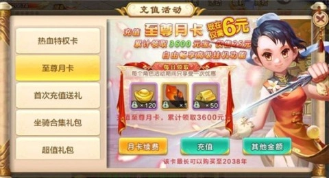 《热血江湖》的付费门槛不算低,不过游戏里大部分道具都能靠参与活动或者长期玩慢慢攒出来。如果是不太追求强度的佛系玩家,买个月卡和逍遥卡就能享受到VIP5的便利,这样比较省心。另外还有个小技巧:同一个账号下建四个角色,每个角色各充6块钱,就能更省钱又快速地升到VIP5了。