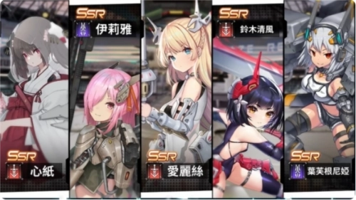 新手十连会在下图五位中必出一个SSR角色(心纸、伊莉雅、爱丽丝、铃木清风、叶芙根尼娅)