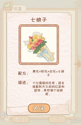 6、各式各样漂亮的花束,正等待着你去学习包装,轻松收集就能解锁图鉴。