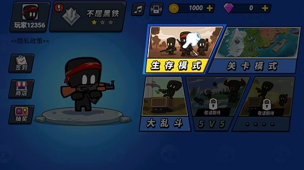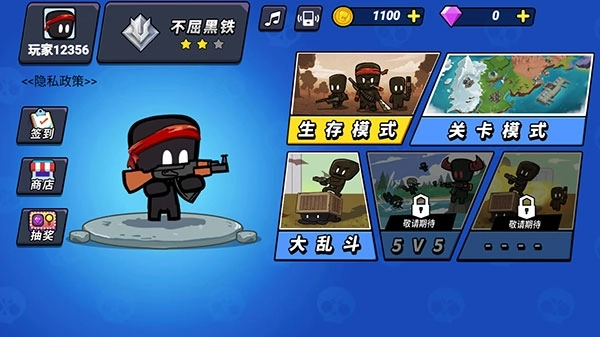 火线枪战躲猫猫是一款十分有趣的卡通射击动作生存游戏,在游戏里玩家能体验到多种趣味玩法,生存模式、关卡模式、大乱斗以及5V5竞技都等待着你去挑战!而且我们还可以在游戏内使用各类强力武器,手枪、AK、火箭筒等应有尽有,让你能在游戏中尽情享受射击带来的乐趣!和其他玩家一同进入地图开启生存冒险,看看谁能坚持到最后!