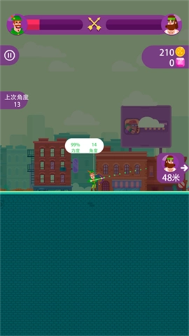 2、拉弓过程中会呈现一条虚线,当玩家把角度调整至与虚线对齐,且力度与角度指示均变为绿色时,便可松手进行发射。