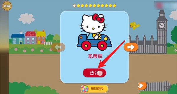 1、启动凯蒂猫飞行冒险的最新版本,按照图示点击并选择【凯蒂猫】;