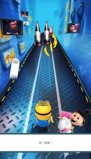 2、我们会进入一条跑道,通过左右滑动屏幕来操控小黄人避开障碍物。