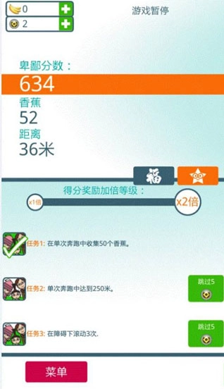 1、操控萌萌的小黄人开启跑酷之旅,努力收集更多香蕉以提升卑鄙分数,从而赚取更多金币!