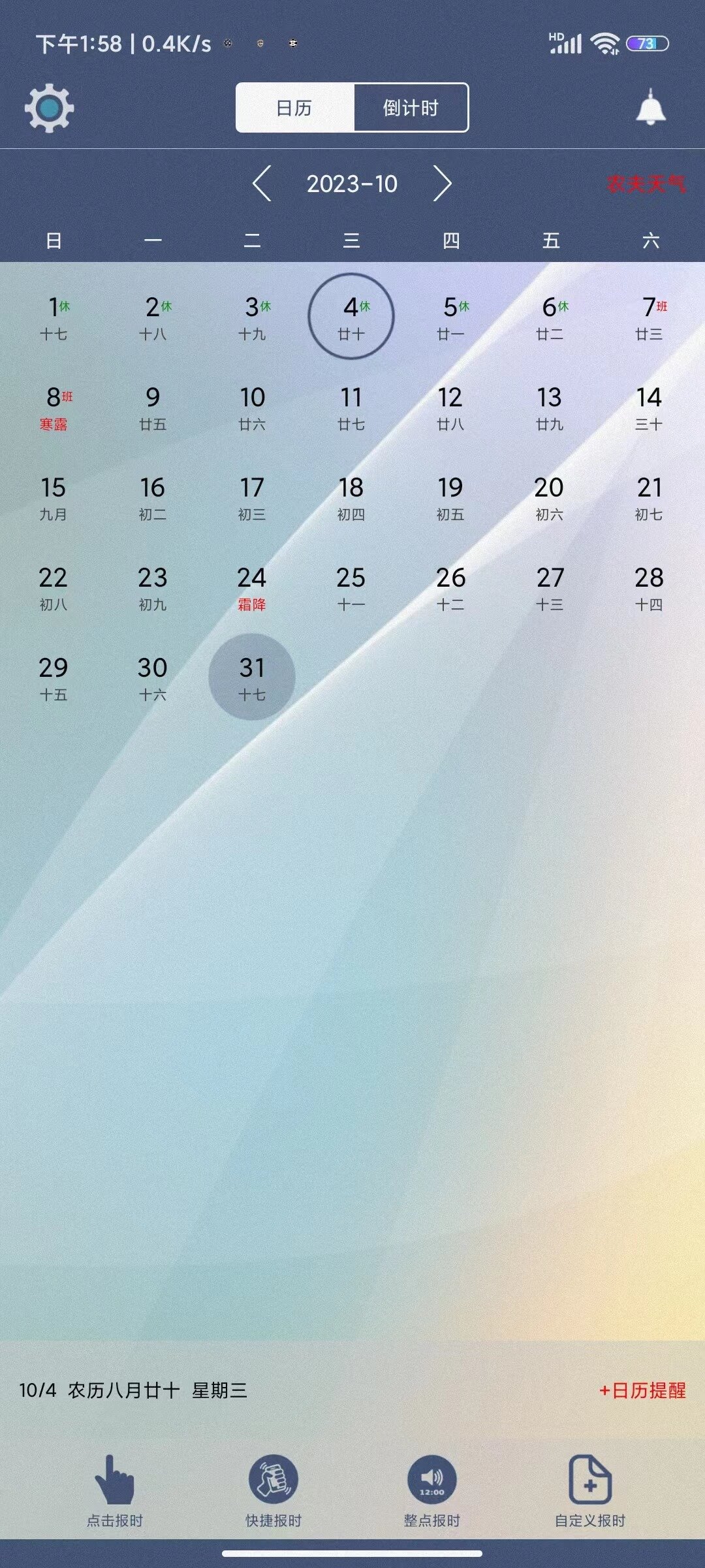 3、设有万年历闹铃提示,可在任何时间、任何地点进行线上作业。