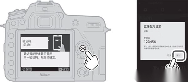 8、完成配对连接:确认无误后,按下相机上的 OK 键,再点击手机上的配对按钮,即可完成连接。