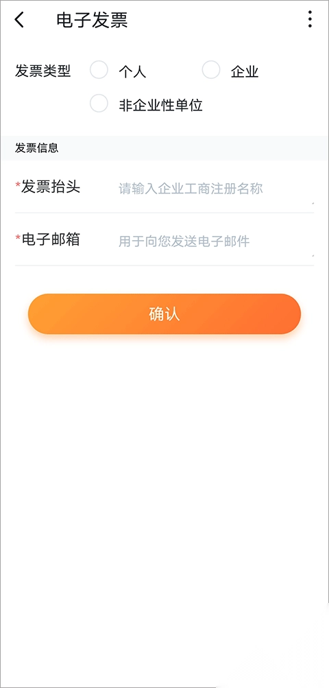 3、最后一步,依据页面信息选择发票类型、抬头并填写邮箱,点击确认即可,最终发票将发送至你所填写的邮箱。
