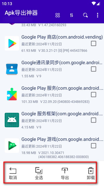 《Apk导出神器》是一款界面简洁且功能强大的手机应用提取工具。在日常使用中,各类文件资源包都能通过互动渠道快速提权。该客户端作为专业的安装包导出工具,专为希望简化Apk分享的用户打造。在此,用户只需动动手指,就能将已安装的应用重新打包成Apk文件,并通过不同渠道进行资源分享。如此,既满足了用户的使用需求,又极大地简化了繁琐步骤。
