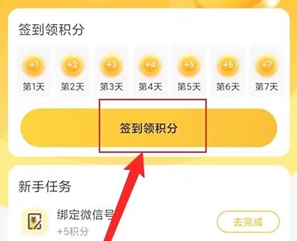 2. 在已打开的页面里寻觅“签到领积分”,点击此选项便能完成签到。