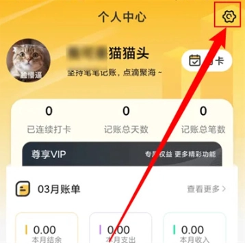 2.进入个人中心界面后,点击右上角的齿轮形状图标即可打开。
