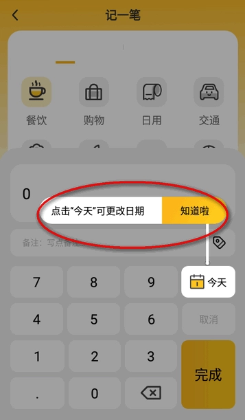 4.输入金额,点击今天那里可以改日期