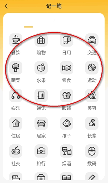 3.在记一笔中选择花费的类型