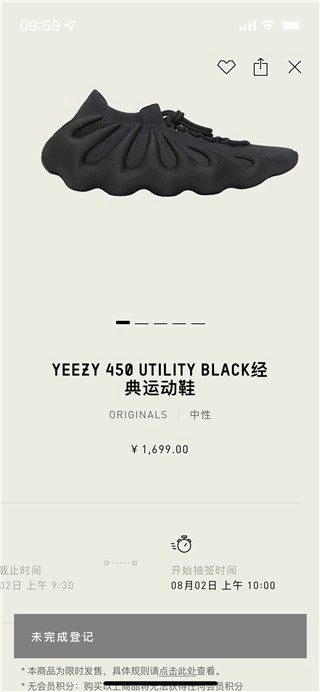 5、若您希望参与这双鞋的抽签抢购,需先完成抽签信息登记,才有资格进入后续线上抽签环节。不过,完成抽签信息登记并不意味着中签,最终是否中签,以您后续收到阿迪达斯发出的中签通知为准。