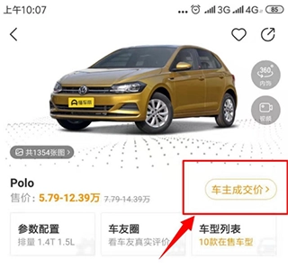 2. 进入页面后,挑选您想要查看的车型。接着点击右上角的“车主成交价”,即可进入。
