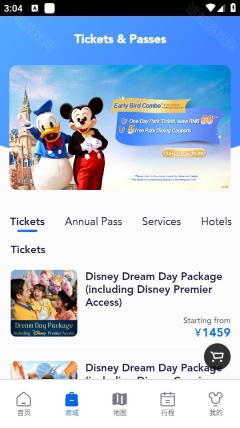 1. 于上海迪士尼度假区首页点击门票。