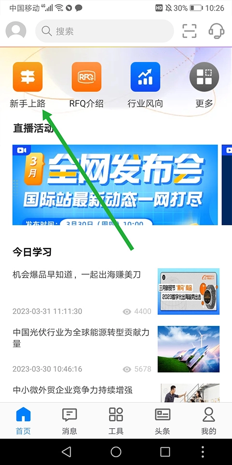 1. 开启程序并完成登录操作,随后点击首页上的【新手上路】按钮。