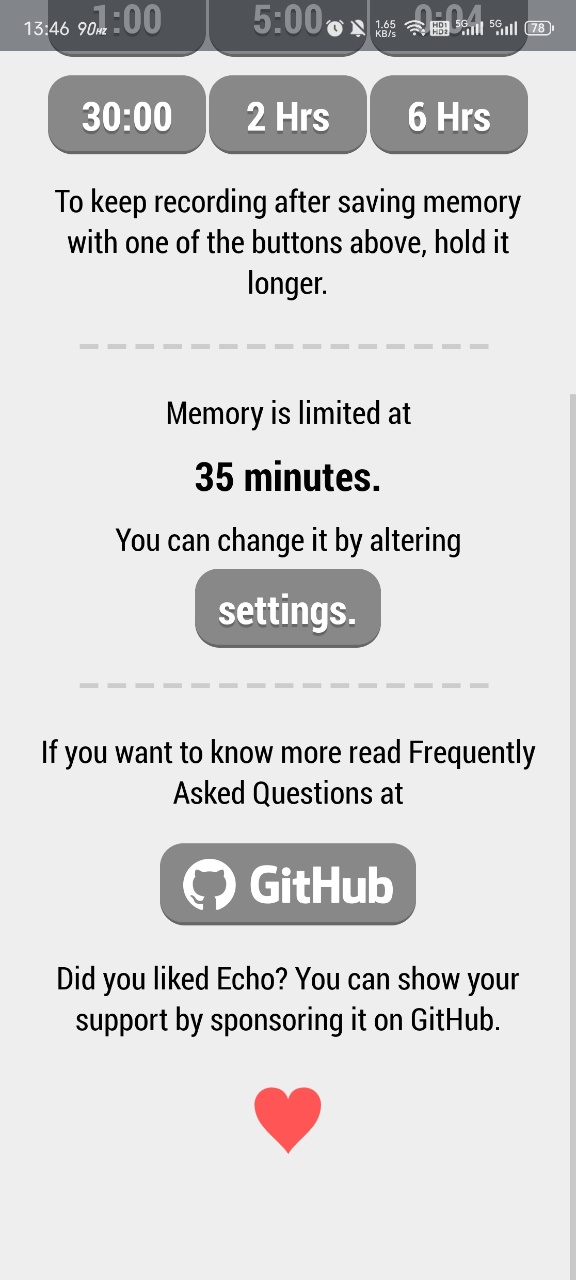 而短按这几个按钮,则立即保存在此之前的录音,比如点击 5:00,就保存之前5分钟的录音: