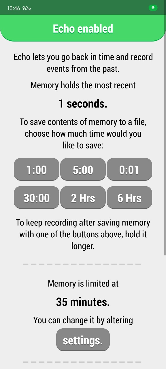 点击顶部的 Echo 按钮就开始自动录音,当呈现下图绿色的状态(enabled)时,就是正在录音。