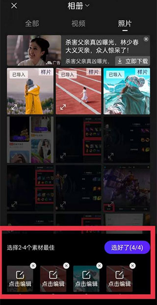 3、挑选一个自己心仪的素材,选好图片与视频后,点击“选好了”。