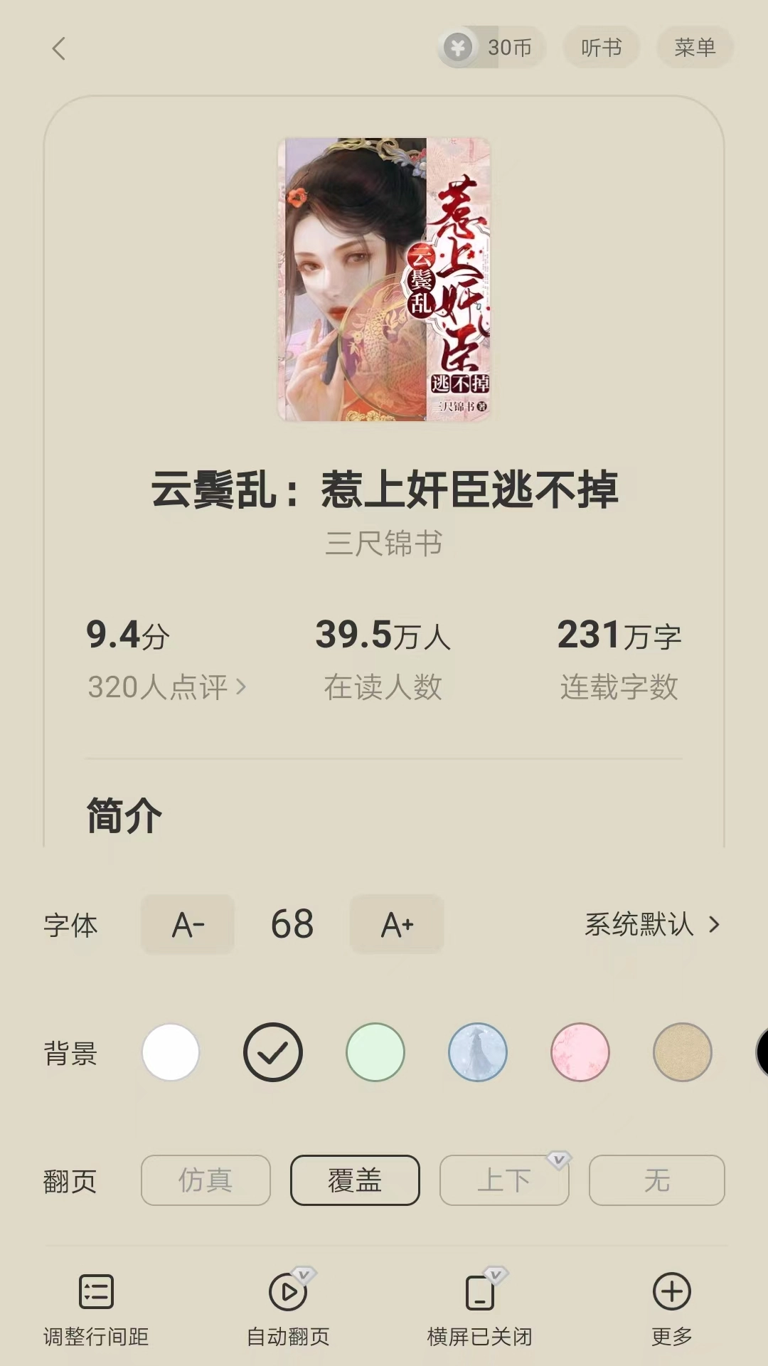 4、选定相应书籍后,便能看到评分、在读人数、字数、简介等详尽内容。