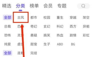 第三步:在页面中点击【古风】选项,进入后就能查看各类漫画全集啦!