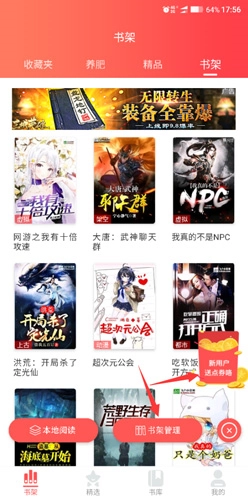 1. 轻点书架,右侧会出现一个加号,点击该加号,便能看到书架管理与本地阅读。