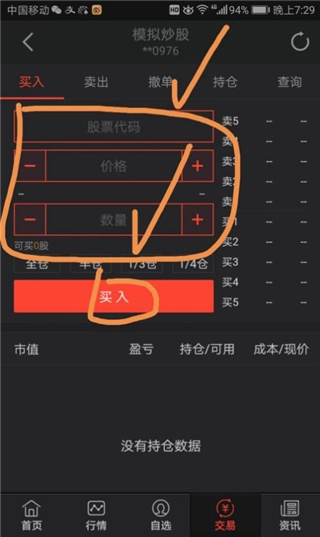 10、在输入股票代码、价格以及数量后,点击“买入”即可完成买入操作。卖出及其他操作流程与之类似。