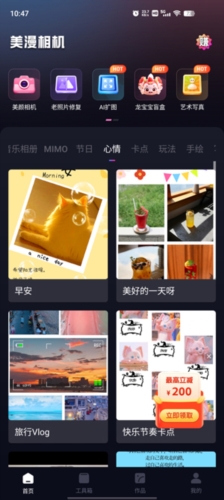美漫相机不仅支持老照片的修复,还提供丰富的图片编辑功能。通过智能算法,使照片“动”起来,并支持多种拼图样式。多种拍摄模式让用户可以拍摄出动态的照片,提供创意图片编辑工具如贴纸、文字、边框等元素。选择合适的拍摄模式,如风景、人物、室内等,让您拍摄更加精准生动的照片。