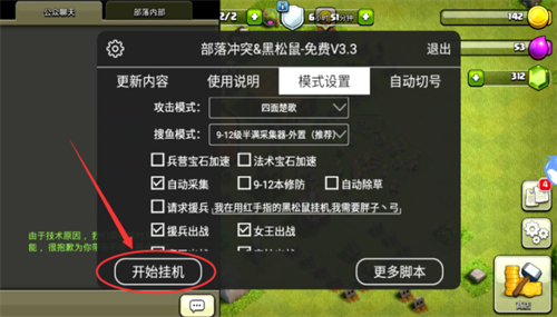 2、独占开启并挂机,最强部落冲突援助,无人。