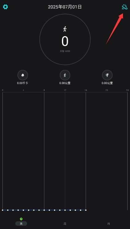 在数据统计页面能够切换查看各时段的步数数据,点击跑步按钮即可进入运动前的准备界面。