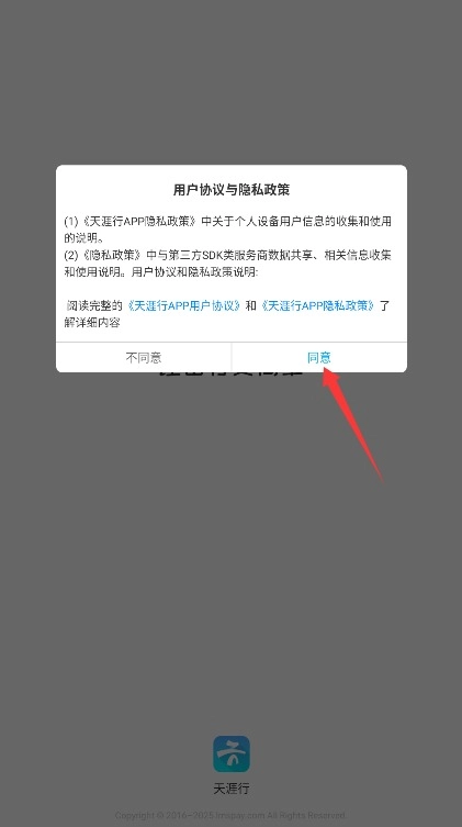 首次使用平台时,请仔细阅读服务条款与隐私政策,确认无误后点击同意按钮即可进入应用。