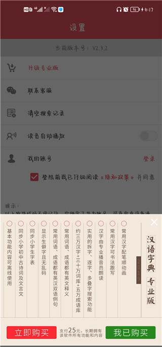 用户完成软件付费后,字典软件将自动与指定账号绑定并解锁功能。