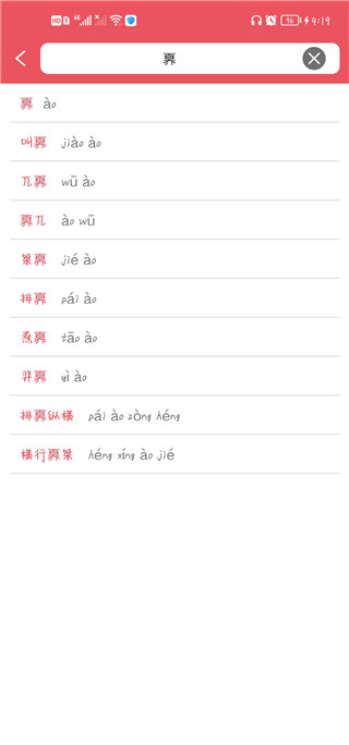 当你输入汉字、拼音等的前一部分时,搜索联想功能会自动为你展示各类相似的汉字、成语等内容。