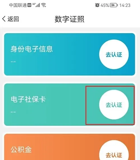 第三步进去数字证照之后,然后点击电子社保卡