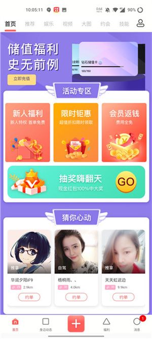 打开约单应用后,首页上能看到陪吃饭、陪看电影等多种服务选项,你可以根据自己的需求进行查找,然后点击你感兴趣的服务提供者。