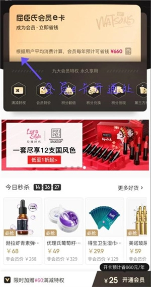 五、于会员中心页面开通屈臣氏会员e卡后,会员每年最高可节省660元,并能享受多重专属优惠权益。