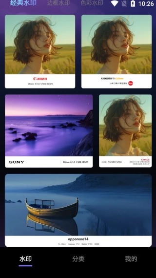 摄影师和摄影爱好者常用的徕卡、哈苏、索尼等市面上众多品牌的水印,都能通过一键获取功能轻松得到,各类常用水印应有尽有。