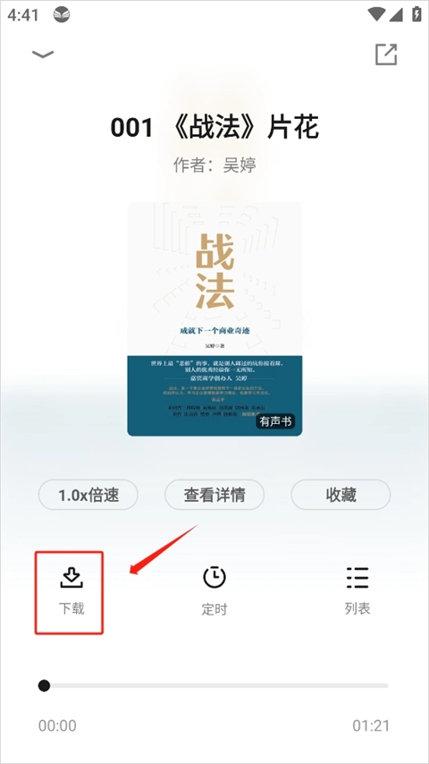 进入“书院”页面后,挑选自己感兴趣的书籍,点击“阅读整本”选项,完成整本书籍的购买操作,接着点击“播放”按钮,在播放页面选择“”。