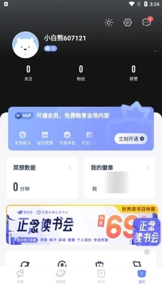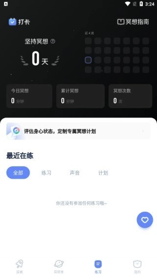 用户能够看到自己最近的打卡情况以及冥想的状态