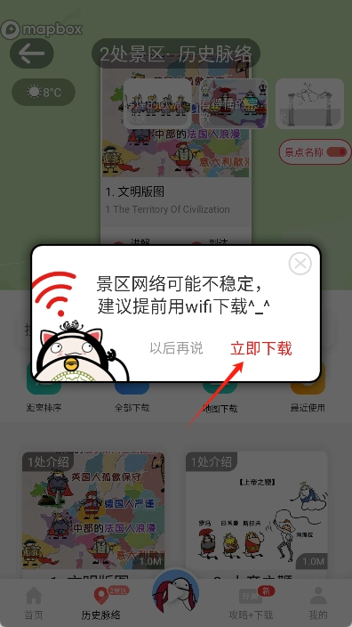 在WiFi环境下,提前准备好我们计划游览的景点的讲解内容。