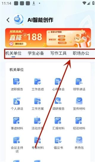 在AI写作界面里,您能够依据自身需求灵活挑选写作类型,覆盖了机关单位、学生群体、职场人士等各类使用场景。