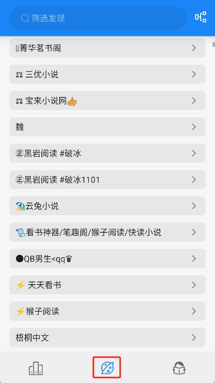马上打开应用,点击底部导航栏里的书源图标,查看系统提供的各类书源。
