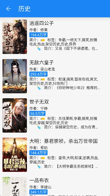 从给出的小说里挑选一本自己想读的,点击进入详情页,就能查看作者、简介等相关信息。